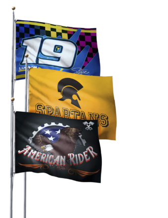 Our custom pole flags can transform your logo or artwork into a dynamic flying reality. Flags are printed with high-quality eco-safe inks through our dye sublimation process. Whether you are flying your flag on a pole or simply hanging it in your room, we offer two types of finishing to accommodate your displaying needs.
