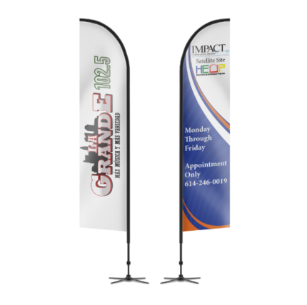The Econ Feather Flag is suitable for outdoor events. Effectively advertise your logo or message with our econ feather flag. Its curved sleeve and free-flying edge allow the flag to grab attention without wrapping around the pole, and assembly is easy. Available hardware is a ground stake to fit your pole set. Features: